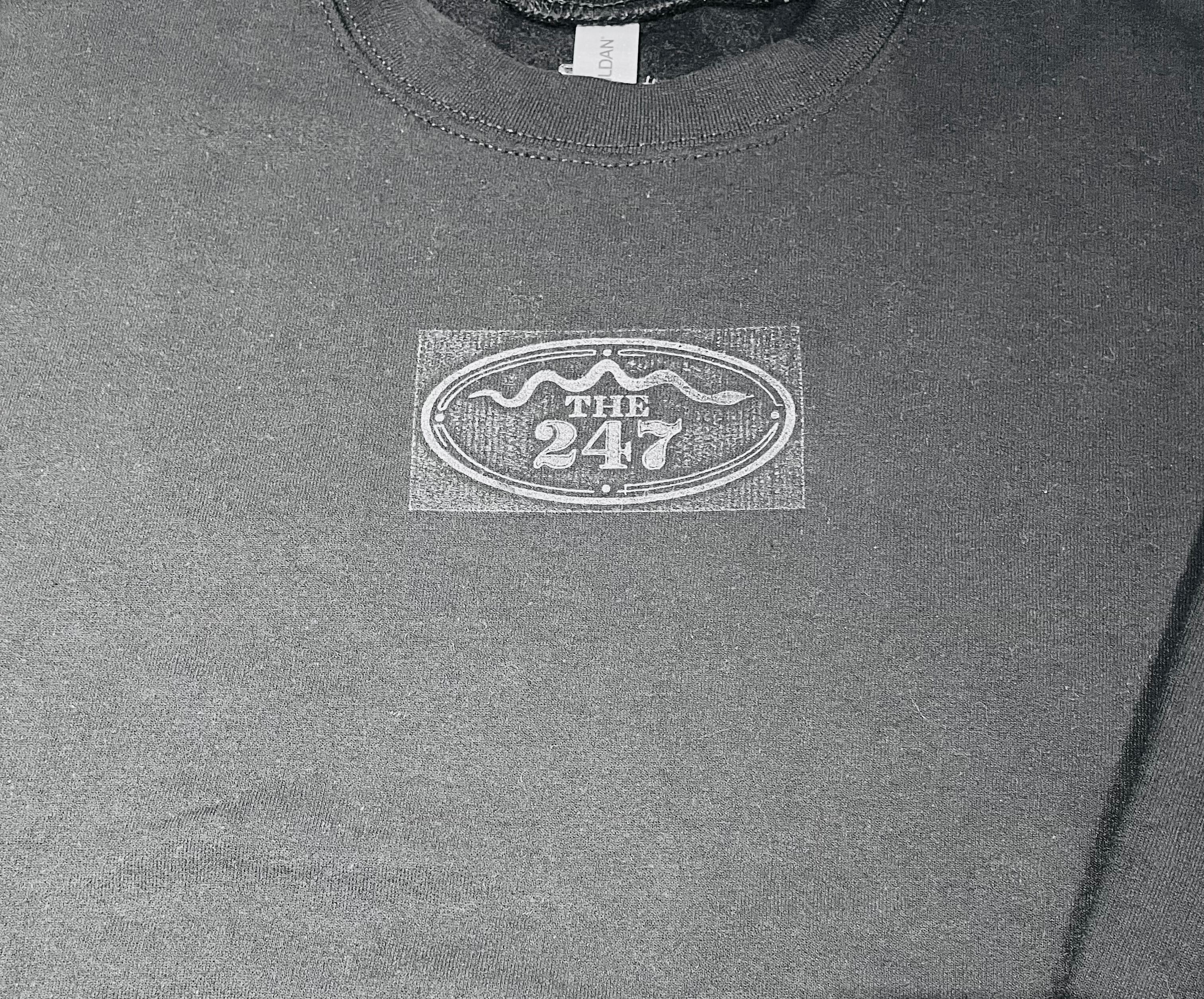バックにTHE247のアイコンであるスネークのモチーフが施されたスウェットシャツ。